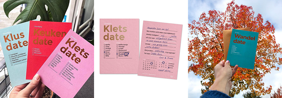 Wat is een mooier cadeau dan elkaar tijd geven. Oprechte aandacht door samen iets te doen. Nodig iemand uit voor een lekker etentje met een klets-date, ga een dagje naar het theater met de doe-date, duik samen de keuken in, of ga lekker samen wandelen. Met deze Happy Invites is de afspraak zo gemaakt!